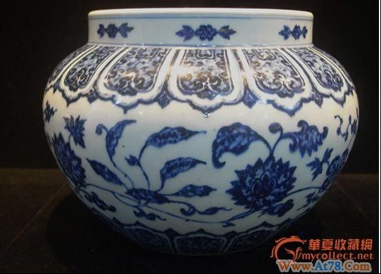 这只仿永宣的罐子就是王刚在鲁豫有约中的照片中的那只,这只罐子比故宫所存的那只发色\器型更好.在故宫书上记载这类不是罐而是花囊.(宫中用于插花的)这只花囊可见雍正仿永宣器的成就,也能看出雍正仿永宣器很多都没有款识.