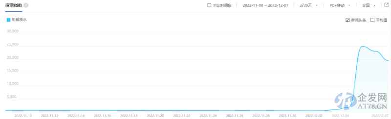 电解质饮料的百度搜索指数从12月4日的1869涨到12月5日的25031,12月7日维持在19590。资讯指数从12月4日的337涨到12月7日1597。