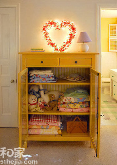 点评:在小屋的过道墙上,准备一个红色的心形装饰,用灯饰环绕,看起来温情又甜蜜。虽然不是新房,但爱的温度不减!