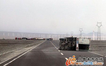 来自高等级公路交警支队吐鲁番大队的消息显示,25日20时40分许,在吐乌大高等级公路小草湖风力发电站往吐鲁番方向,300米长路段上,三辆厢式货车遭遇横风被吹翻。