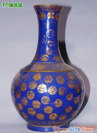 03.清光绪 霁蓝釉金彩团花纹饰官窑赏瓶