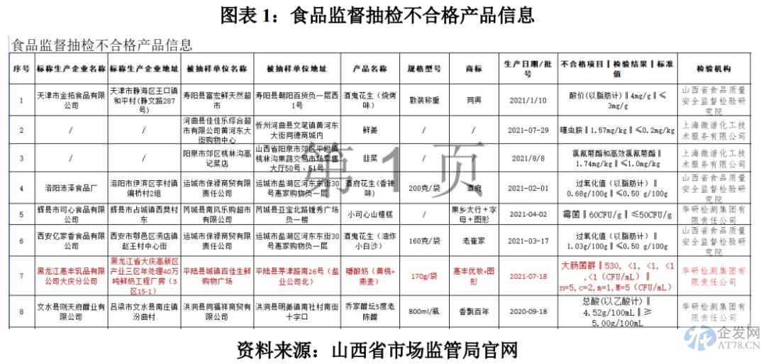2021年10月,山西省市场监督管理局发布了2021年第29期食品安全监督抽检信息通告,如图表1所示,惠丰乳品大庆分公司生产的嚼酸奶(黄桃+燕麦)产品大肠菌群项目抽检不合格。