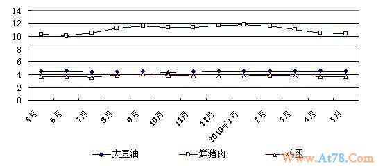 5月份,监测的主要商品价格有升有降,总体比较平稳。