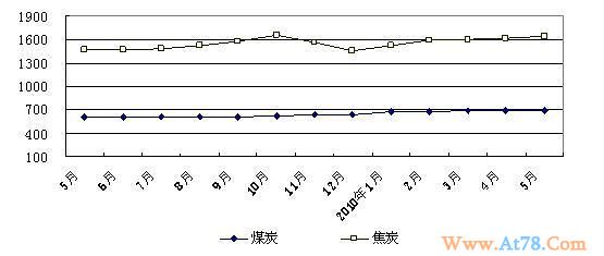 煤炭价格总体平稳。5月份,主产省煤炭平均出矿价格为每吨715元,与4月份基本持平。其中,动力煤平均价格为每吨523元,比4月份略降0.47%;主产省焦炭平均出厂价格为每吨1583元,比4月份上涨1.09%。主要煤炭中转港秦皇岛港5月份动力煤平仓价每吨675元,比4月份上涨5.53%。