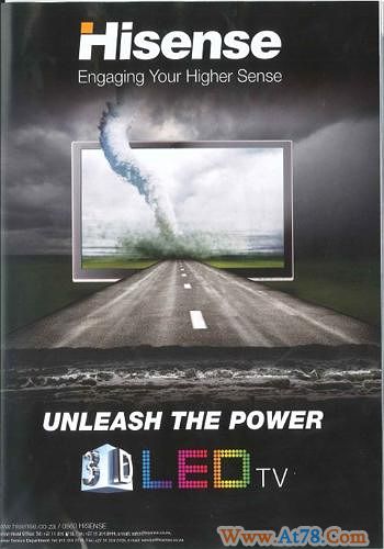 无论是在南非著名旅游胜地开普敦,还是港口城市德班,以及经济中心约翰内斯堡,城市的主要街道、机场、购物中心、高速公路旁、产业园区等地都可看到与众多世界著名品牌比肩伫立的用最新的3D技术制作的“Hisense”路牌广告;在南非《DigitalLife》、《Stuff》、《You》、《Drum》等知名杂志均可见到海信“释放能量”3D飓风形象全彩广告;Facebook、Google等网站均闪烁着海信3D“飓风”释放能量的画面;EASTGATE和ALBERTON等南非著名的shoppingmall,均将海信3D-LED电视作为顶级展示;在南非世界杯举办城市开普敦“绿点”世界杯赛场、知名的旅游景点桌山附近以“Hisense”命名的开普敦摩天轮,游客还可通过在此展示的海信3D-LED液晶电视感受到3D世界杯的精彩。